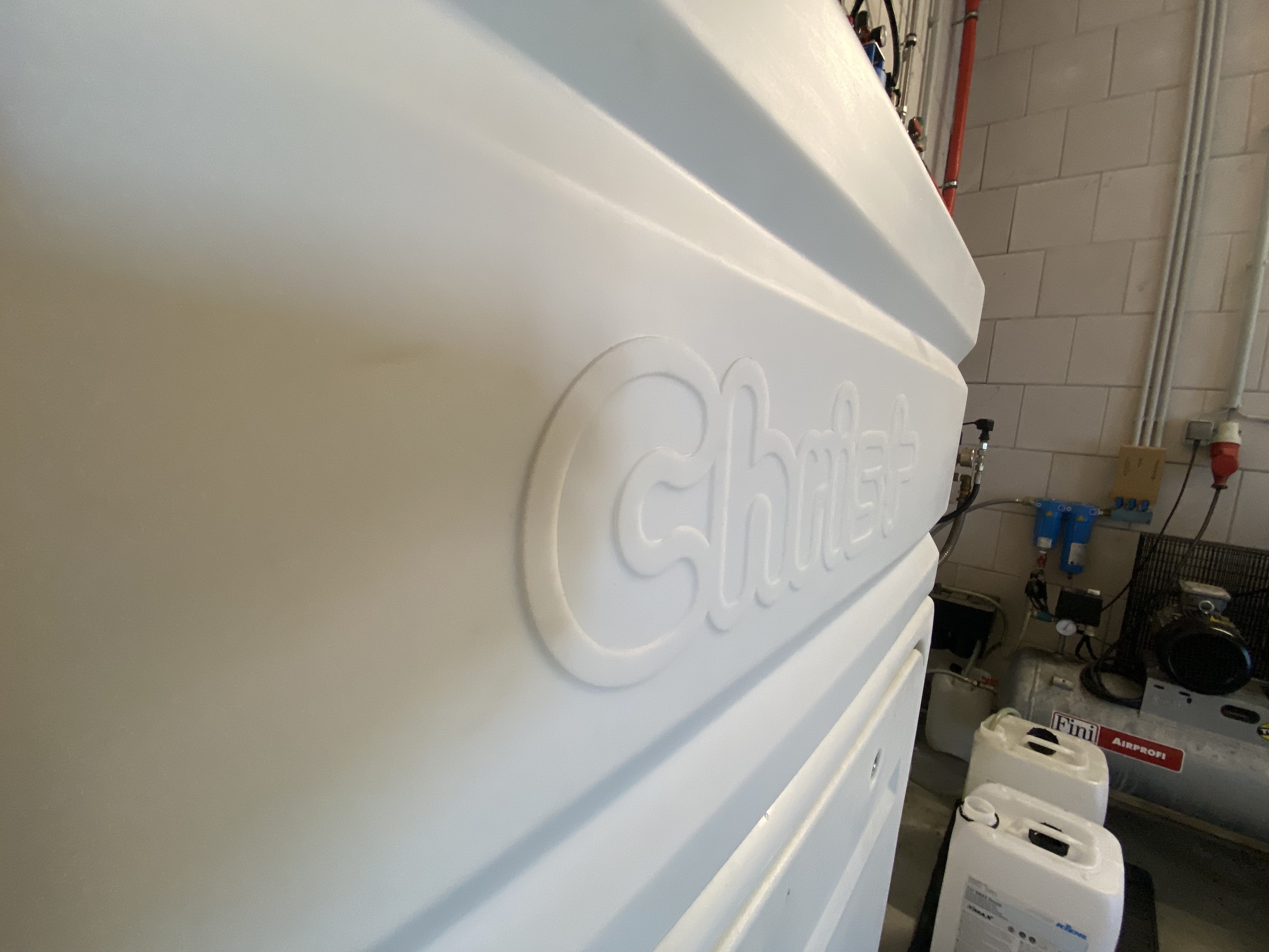 Wie bei allen Christ-Anlagen sind Schaltschrank und Chemie leicht zugänglich. Durch die Aufteilung von Wasch- und Trockenportal ist das Innenleben der Anlagen besonders übersichtlich und alle wichtigen Bauteile sind gut erreichbar. Bedingt durch die moderne Bauart der Anlage (Wasseraufbereitung, etc.) halten sich die Betriebskosten sehr in Grenzen.